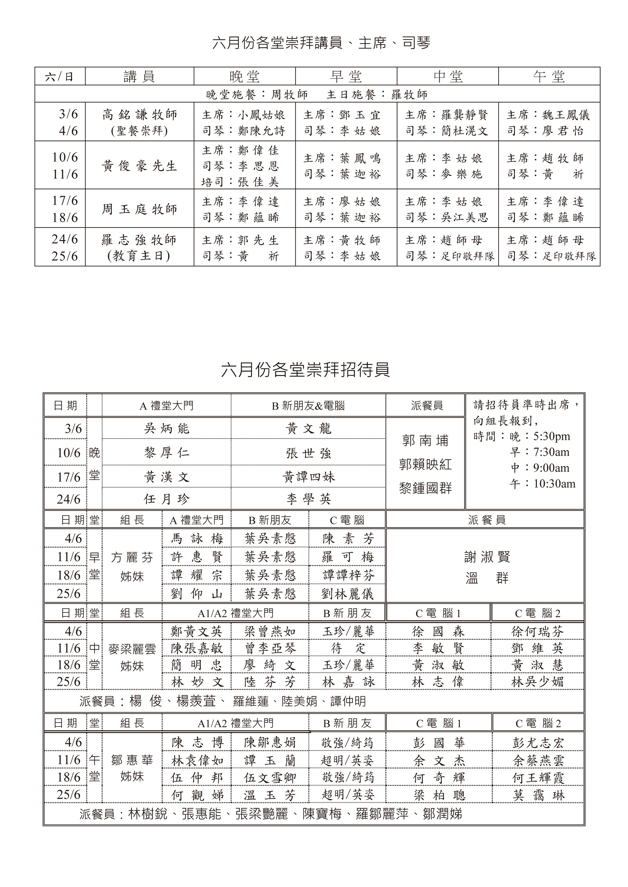 崇拜事奉人員
